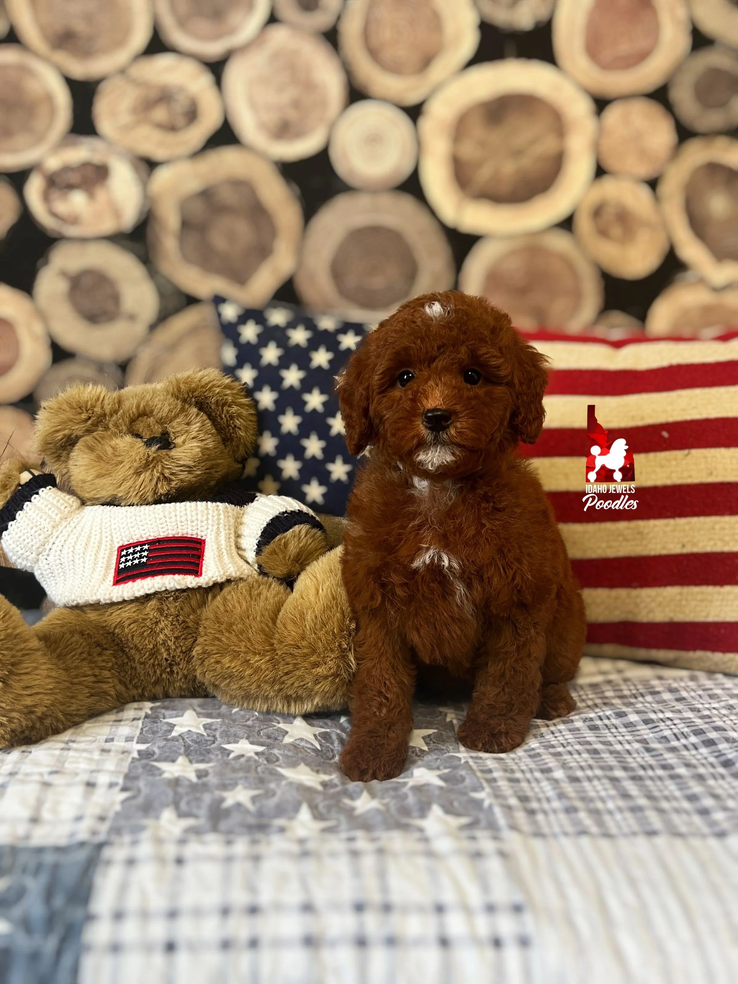 Addilynn is a dark red abstract large miniature/small moyen-sized poodle girl. She has a fun and playful temperament with a moderate amount of energy. She loves to meet and play with other dogs.