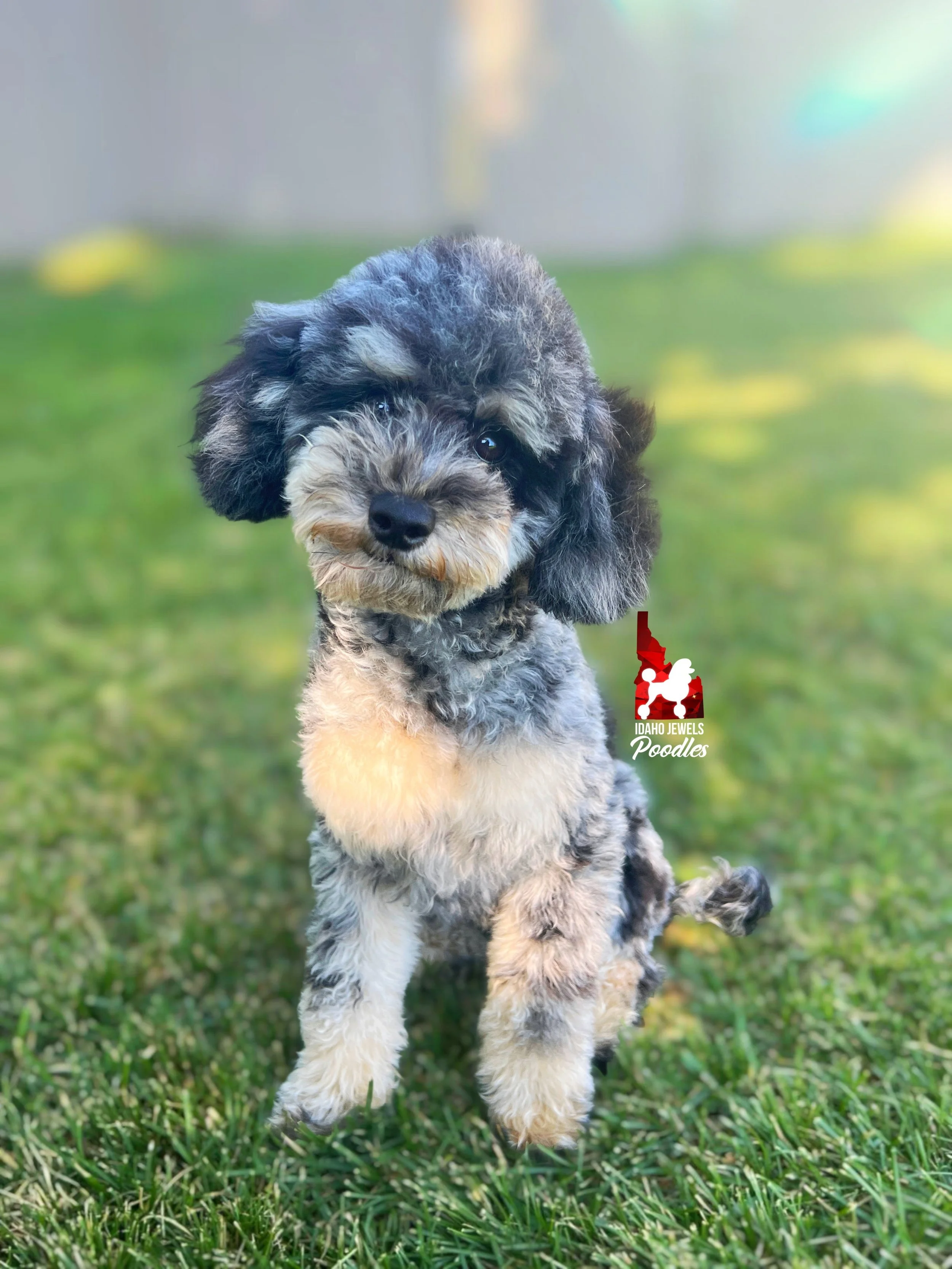 Ashtyn is a lovable and outgoing phantom mini poodle with a heart full of love to give. Her playful nature and friendly demeanor make her a beloved member of our family, always ready to bring a smile to your face.