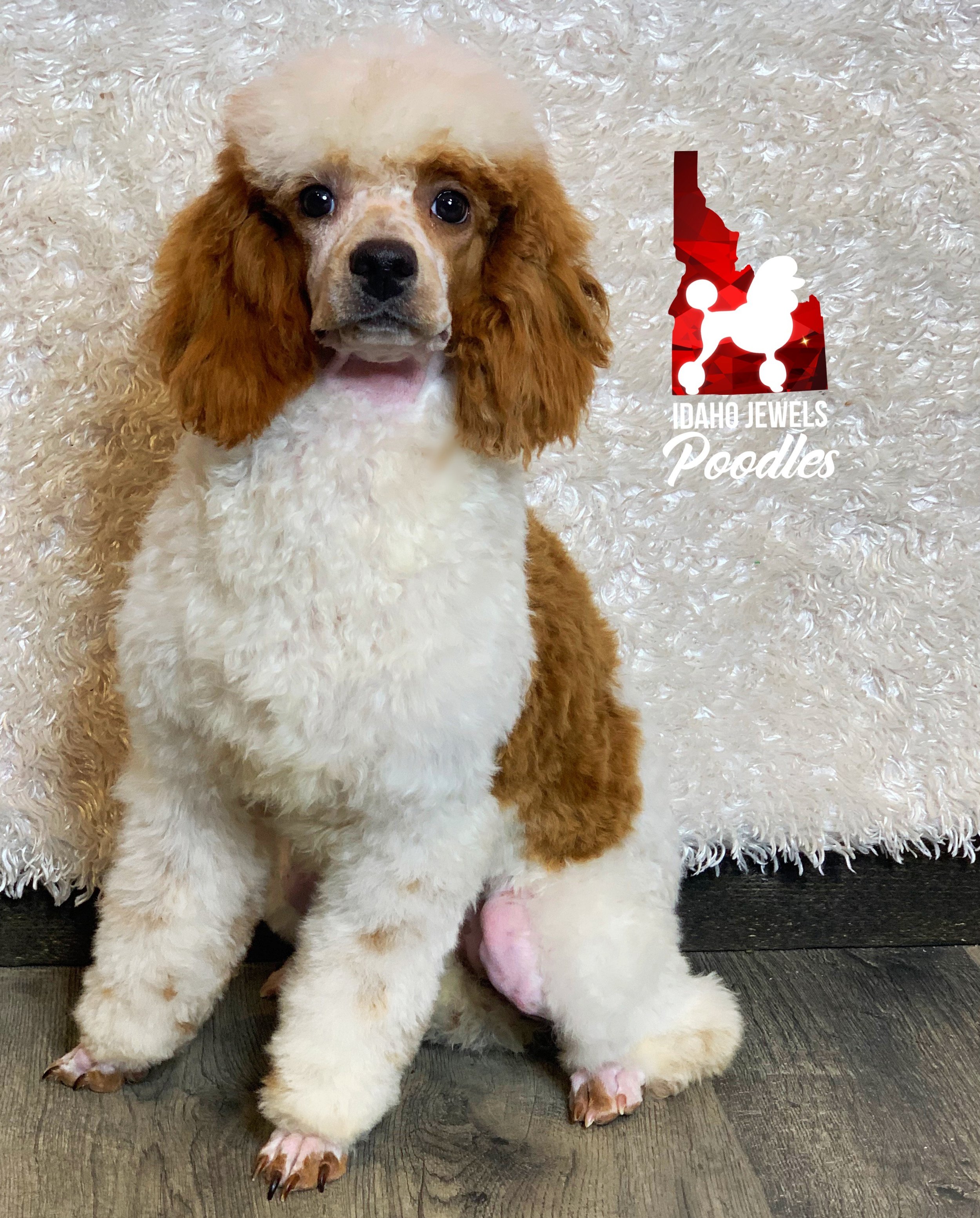 Raya is a very loving, laid-back, red parti mini poodle. She loves to cuddle, play, and gets along with other dogs, especially if they are outgoing and willing to play with her. She is friendly upon meeting strangers.